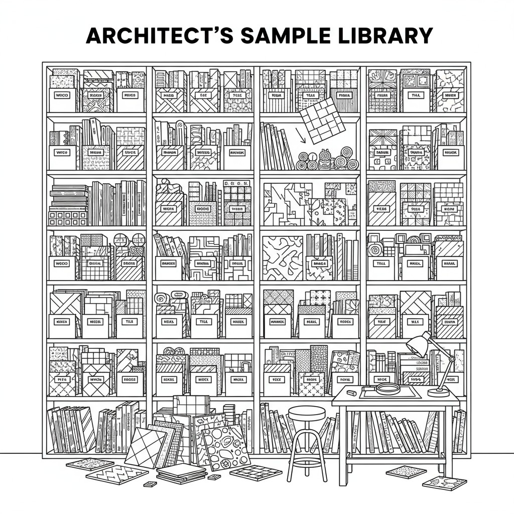A sample library is the physical collection of material and product samples that designers rely on to make decisions. Each sample offers a tactile reference point that helps define the character and feel of a space.