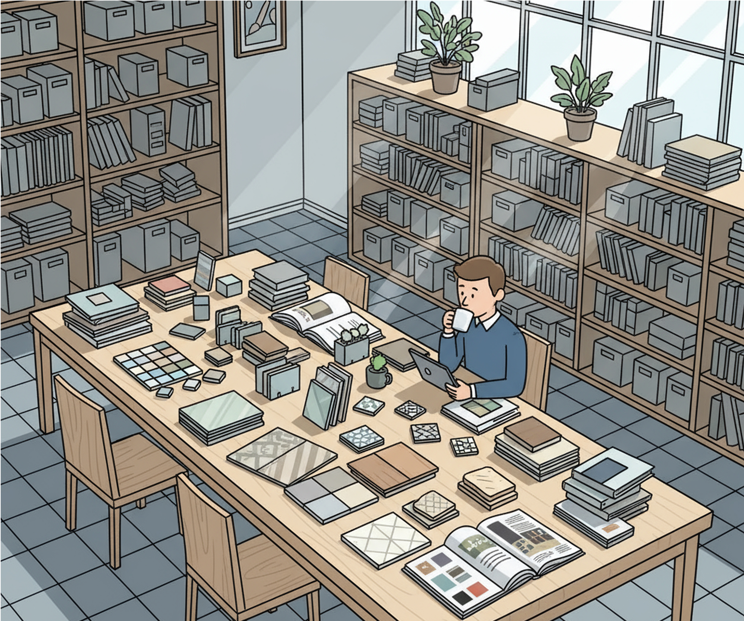 If you’ve ever worked in an architecture or interior design studio, you’ve probably spent more time than you’d like digging through piles of product samples. From stacks of stone and tile swatches to endless fabric binders and paint decks, sample libraries can feel like both a blessing and a curse. They’re essential to how we work-- but without proper management, they can quickly spiral into chaos.